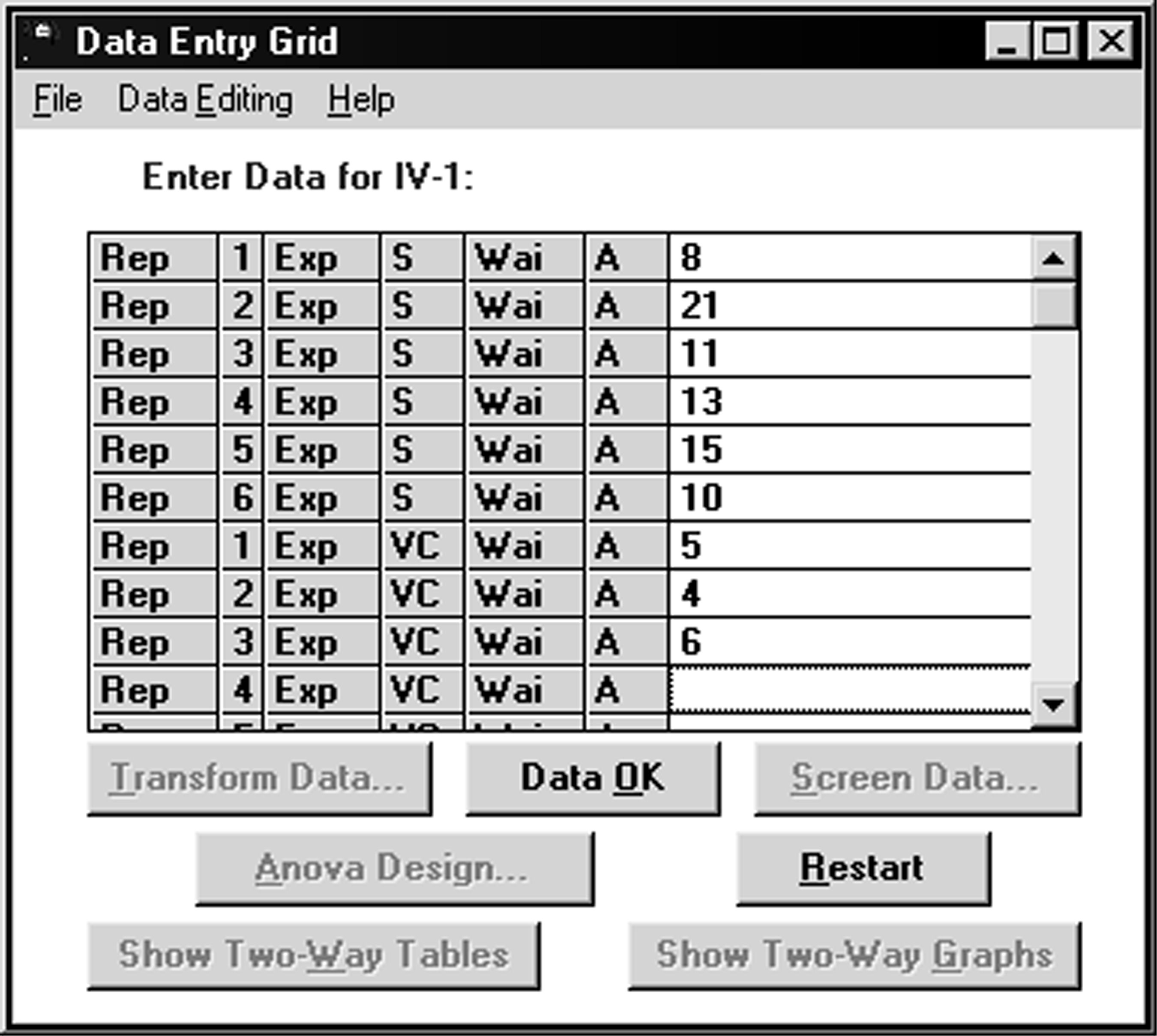 Note how the program guides the user by specifying which cell's data should be entered at each step. An experienced user may not need this guidance, but it can be invaluable for the novice.